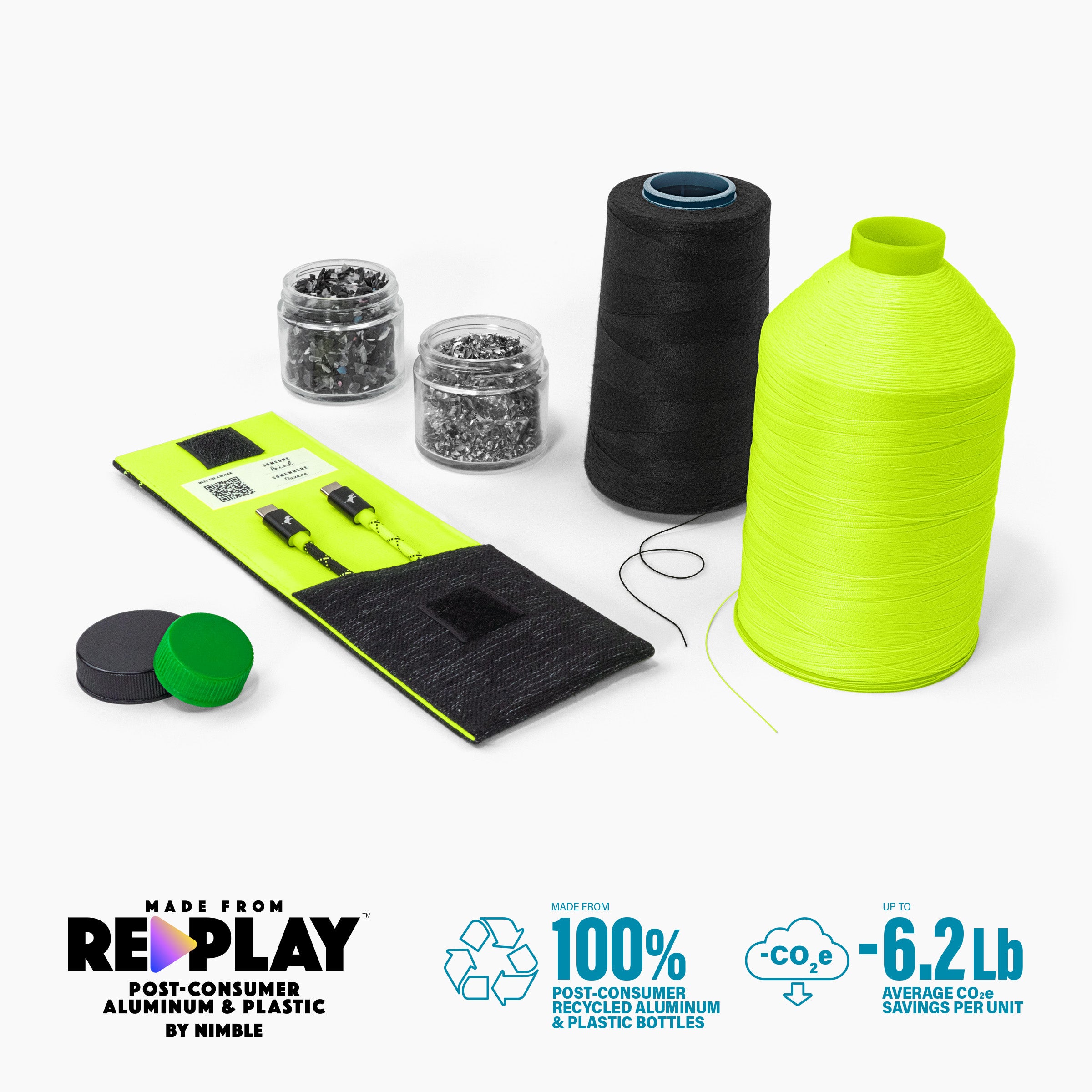 Made with a fabric derived from 100% recycled plastic, 100% recycled aluminium cable heads, and packaged in plastic-free post-consumer scrap paper for an average savings of -6.2 lbs of CO2 compared to other cables. Plus, includes free e-waste recycling for your old tech!