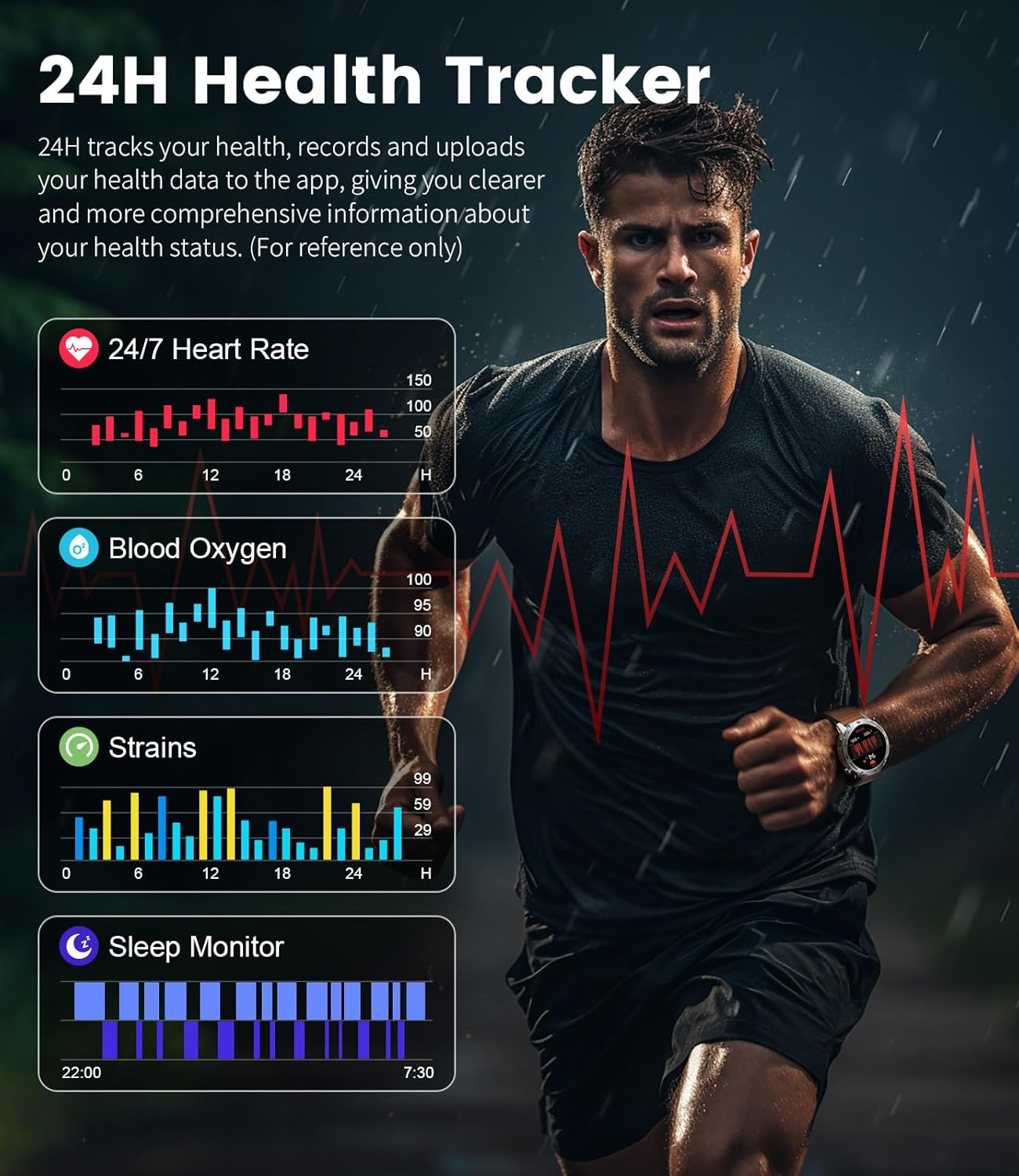 - 【460mAh High Capacity Battery And 5ATM Waterproof】This military smart watches for men uses corrosion-resistant 304 stainless steel case and band, and fully enclosed 5ATM waterproof design guarantee reliability in the face of extreme environments. With a sizable 460mAh battery, it offers an impressive 5-10 days of usage and an extended battery life of up to 30 days.