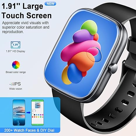 - 【1.91-inch HD Screen and 200+ Customized Dial】The UAUE T60 smart watches for men women features a 1.91-inch TFT color screen and 3D curved tempered glass. The body is as thin as 11mm and as light as 35g, bringing a thin and delicate experience. Manually adjust the brightness so that you can clearly view the displayed time and exercise data even in direct sunlight. You can also choose from more than 200 online watch faces in the "GloryFit" APP or upload photos as smart watch backgrounds.