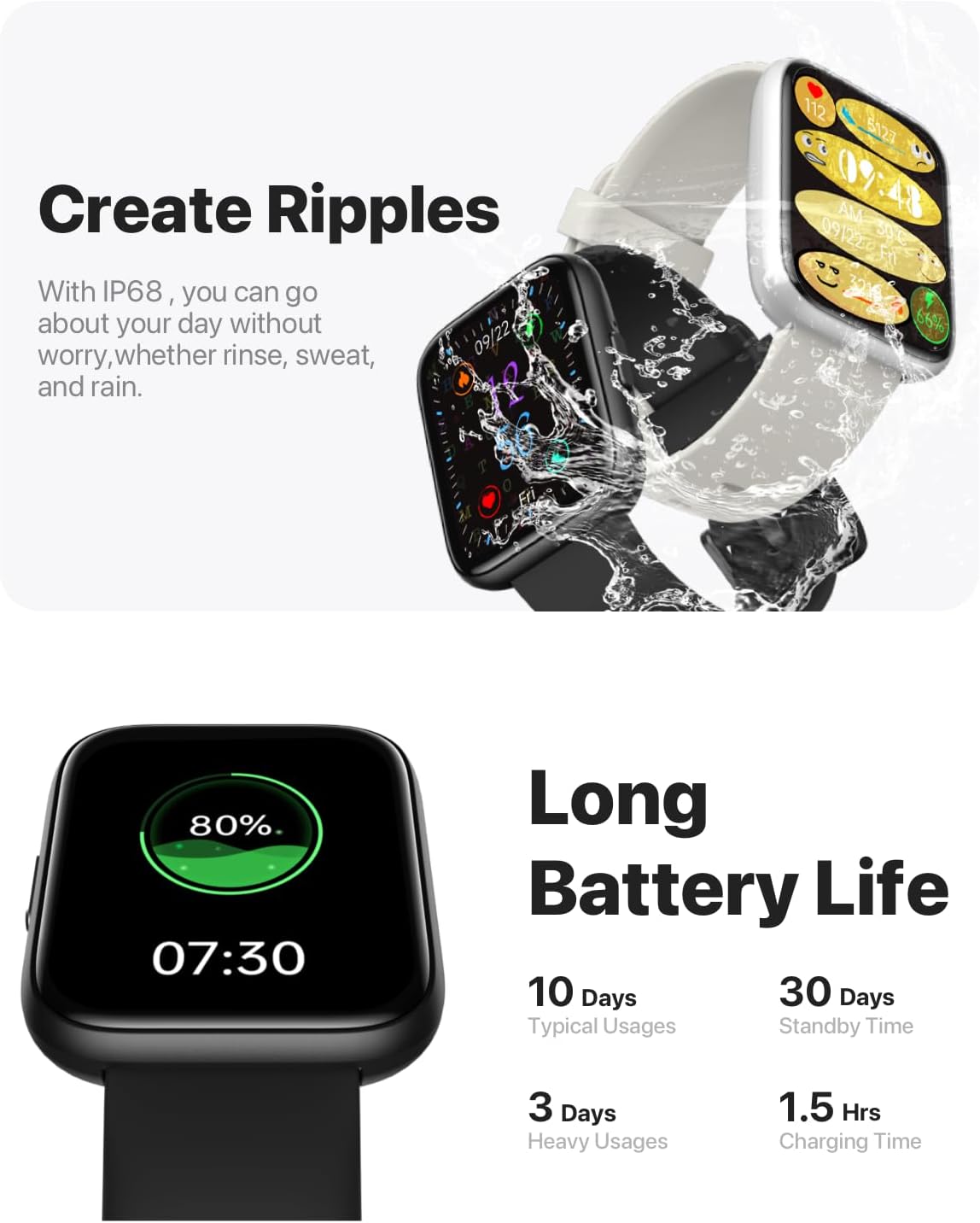 - AI VOICE ASSISTANT & IP68 — Talk to the AI voice assistant for perfect hands freedom navigation, calls, music and alarms. With an IP68 waterproof, you can go through rain, sweat, and wash without worry.