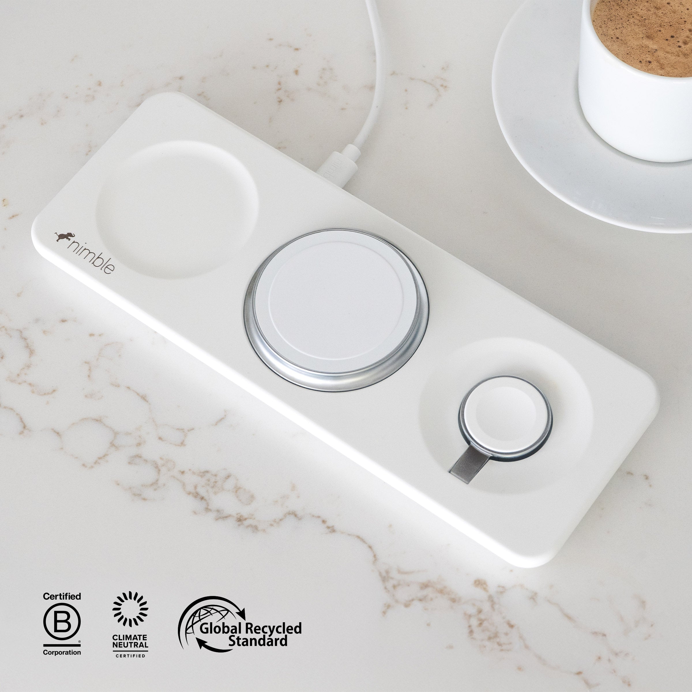 Made with 100% REPLAY post-consumer plastic and aluminum, and packaged in plastic-free recycled paper for an average savings of -9.8 lbs of CO2 compared to other chargers. Also includes free e-waste recycling for your old tech!